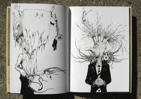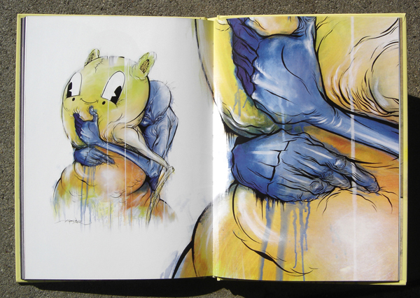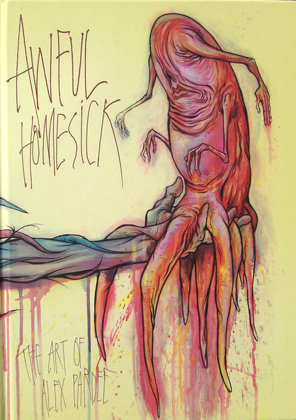 From the twisted artwork of Alex Pardee comes “Awful/Homesick,” a collection featuring the fine artist's favorite works from 2005 to the present. Mixed with the dark, bizarre, and horror-inspired characters, “Awful/Homesick” also shows Pardee's influences from a comic book and graffiti-inspired childhood, with an exploration into the different styles of line work that he has worked on over the past few years. “Awful | Homesick” features a foreword from Jeben Berg. Now that you know the basics, just remember that the next time you are dreaming of waking up in a pool of your own blood. Remember the man Alex Pardee, because he probably has drawn the scenario better than you can think it.