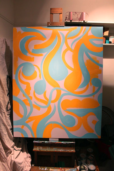 Here is a step by step process of the painting. I started this Thursday night and finished Monday afternoon. It was a very tight deadline and I closed the gallery Friday and Saturday so I could stay home and paint all day. There was no way I could have finished this if I hadn’t done that. It was super awesome though. Staying home and painting all day is a great alternative to working in the gallery.