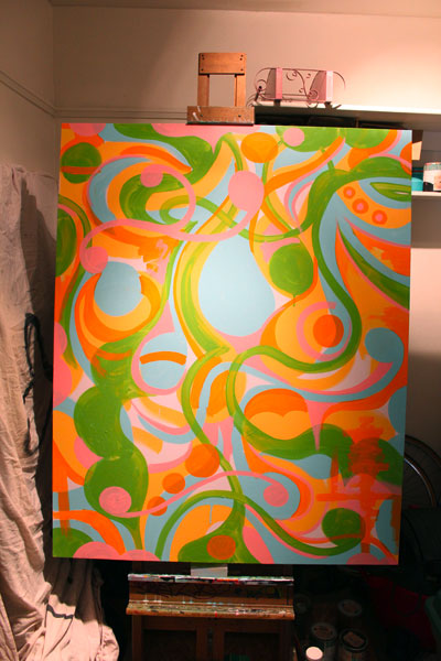 OMG Jeff! How Amazing! The birthday girl was shocked and so excited to receive such a present at 6am, (swedish style). That is so great that you documented the painting like this!!!! I am sorry for the loads of water, OJ and chocolate almond diet over the 4 days, but you have given us such a beautiful, fun and vibrant piece of art, to add to our collection, and enjoy forever! Thank you Jeff!